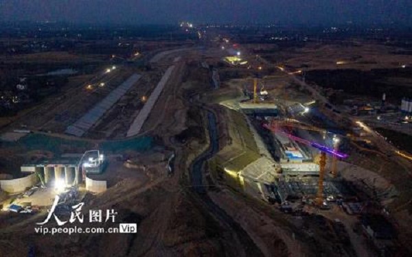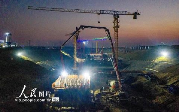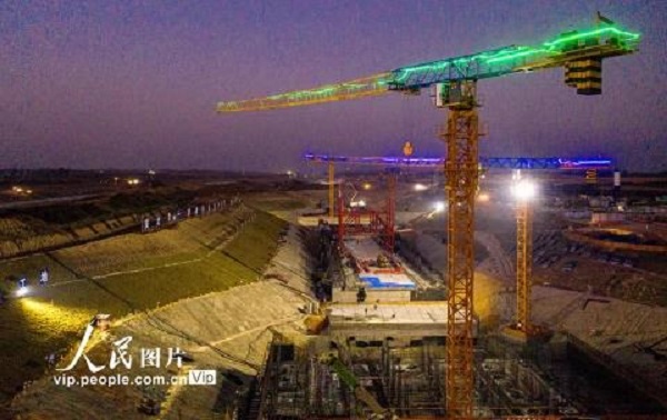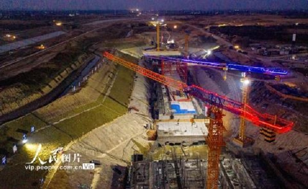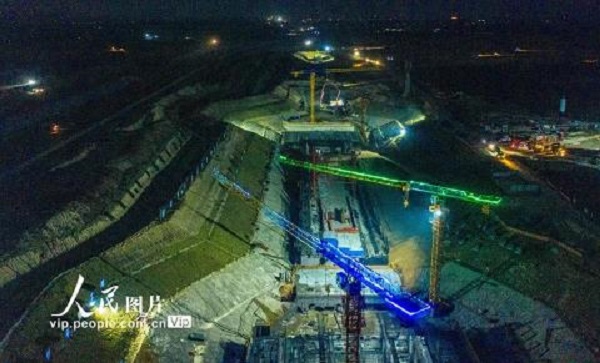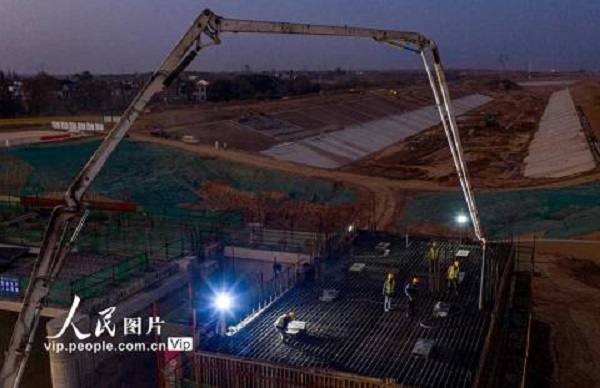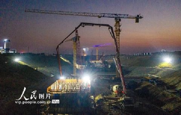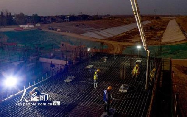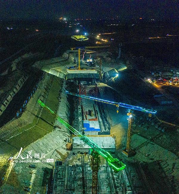 2020年11月15日,引江濟(jì)淮工程安徽省合肥市廬江縣廬城鎮(zhèn)廬江節(jié)制閘施工現(xiàn)場,建設(shè)者們正挑燈夜戰(zhàn)加快工程進(jìn)度。