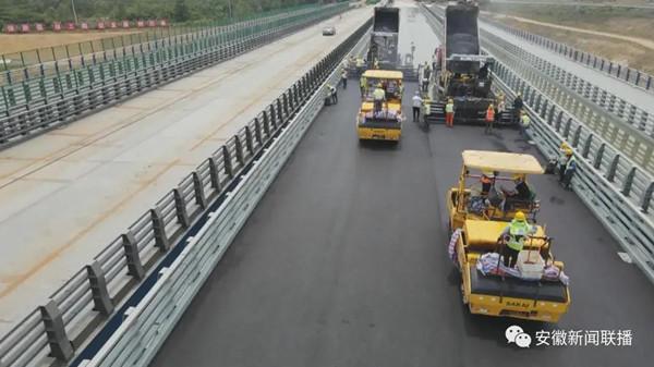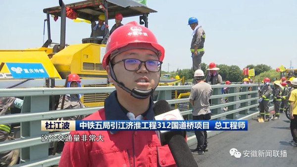 合肥西大門的312國(guó)道,交通量非常大,我們項(xiàng)目部也是攻堅(jiān)克難,盡早地把這個(gè)橋開通,這個(gè)鋪裝完成以后,進(jìn)行整個(gè)橋的動(dòng)靜態(tài)試驗(yàn),七月下旬交工驗(yàn)收。