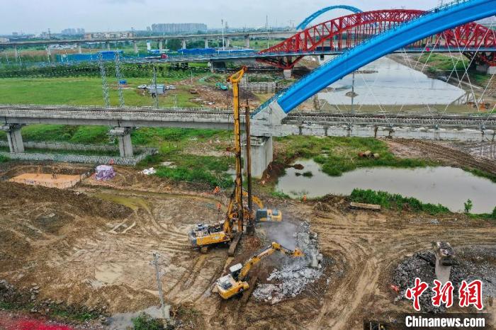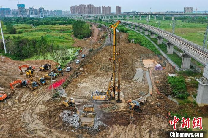 8月14日,引江濟淮工程(安徽段)合(肥)九(江)鐵路改建首根樁基順利開鉆施工。 馬春澧 攝
