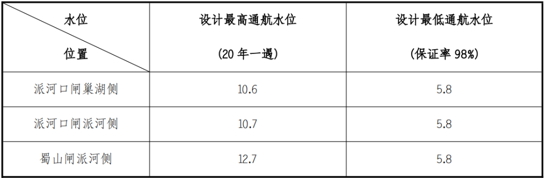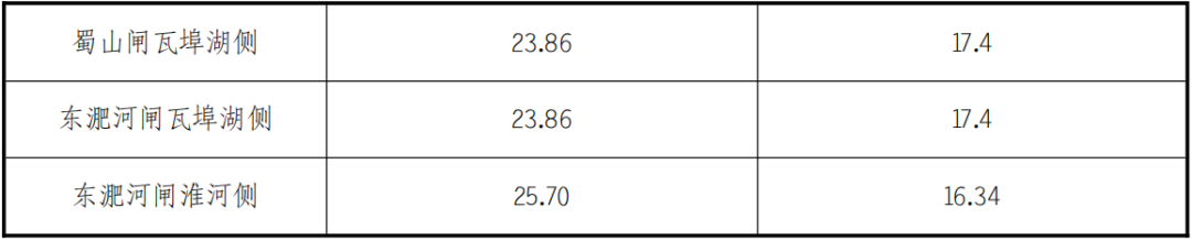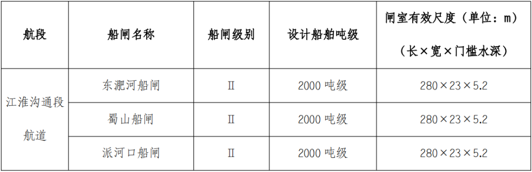 東淝河、蜀山、派河口船閘級(jí)別均為Ⅱ級(jí),設(shè)計(jì)船舶噸級(jí)為2000噸級(jí),閘室有效尺度280×23×5.2m(長(zhǎng)×寬×門(mén)檻水深)。