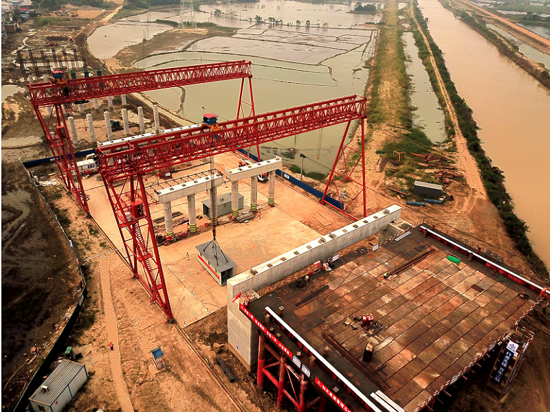 9月1日上午9點左右,隨著龍門吊緩緩移動,一段高2.9米,寬3.5米,長9.0米,單重42.5噸的1號縱梁節(jié)段被送上操作平臺,技術(shù)工人迅速投入散件拼裝。引江濟淮工程菜北橋梁標羅埠大橋成功架設(shè)首節(jié)鋼箱梁。此次首節(jié)鋼箱梁架設(shè)為項目部全線首件施工,為后續(xù)施工提供了寶貴經(jīng)驗。