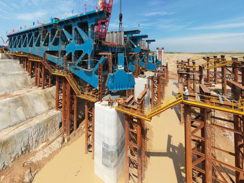 此次淠河總干渠邊跨完成合龍,標(biāo)志著鋼渡槽正式進(jìn)入110米世界第一跨拱弦梁架設(shè)階段,為年底渡槽順利合龍及2021年渡槽正式通水奠定了堅實的基礎(chǔ)。